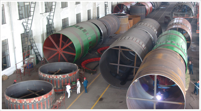 Inner scene of rotary kiln production base |